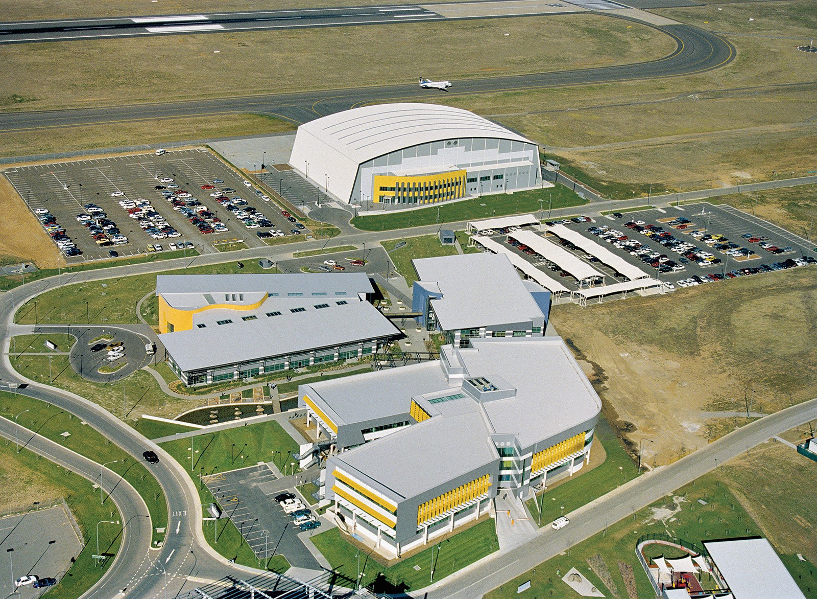 The Impulse Hangar was designed to provide a heavy maintenance engineering facility for aircraft at Canberra International Airport. The development is an assembly of three integral parts, an exterior apron, the hangar, and a support annex.